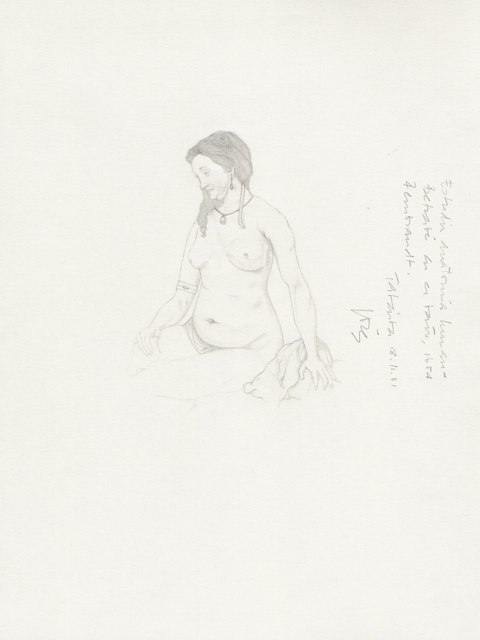 Inspirado en Betsabé en el baño, de Rembrandt (1654)