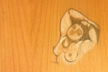 Pencil on wooden tablet (…my paint palette)